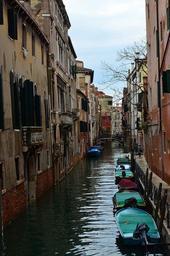 Keywords: venice italy boat motor boat channel small river trees city wall window building