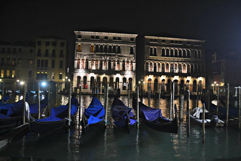 Keywords: venice night city illuminated building gondola historic scene italy water tourism travel canal