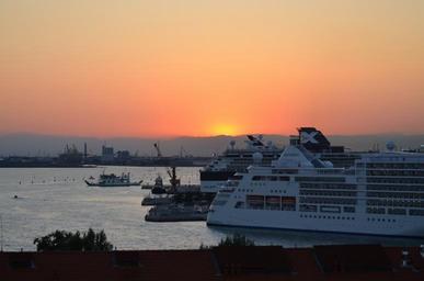 Keywords: venice port cruise ship lagoon sunset tourism ship sky