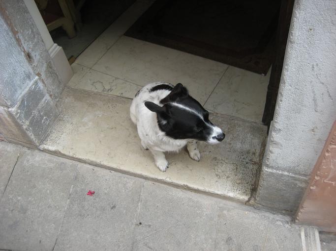 Keywords: Venicestreetdog.jpg en A small dog in a doorway on the street in Venice own Forrestn 2007-07-01 Pictures by Forrestn Feral dogs in Italy Animals of Venice