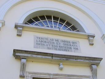 | Keywords: Venite ad me-Karlova Studánka.jpg Detail portálu kostela Panny Marie Uzdravení nemocných v Karlově Studánce citát z Evangelia podle Matouše 11 28 Detail of the portal of the Church of Virgin Mary the Health of the sick with a quotation from the Gospel of Matthew 11 28 own Joker Island Karlova Studánka Venite ad me omnes Gospel of Matthew - Chapter 11 |