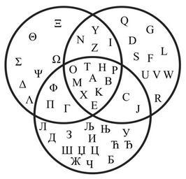 Keywords: Venn diagram gr la sr.svg en In this version Serbian Cyrillic graphemes are used as opposed to Russian graphemes Y / У are considered different in the same way that Λ / Л are 2014-05-31 Venn diagram gr la ru svg Original by mate2code derivative work by Mozartkugeln thumb left In the original file the Russian Cyrillic characters are used instead 3-set Venn diagrams Greek alphabet Latin alphabet Cyrillic alphabet Serbian language Intersection set theory cc-by-sa-3 0 |
