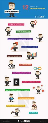 | Keywords: infografias ventajas infografia grafico diseño diseñar illustrator vector vectores resumen imagen dibujos neoattack neoattack.com/ventajas-y-desventajas-de-crear-una-infogra... VENTAJAS Y DESVENTAJAS DE LAS INFOGRAFIAS ¿Qué son las infografías? Las infografías son representaciones gráficas de información, conocimientos o datos cuya finalidad es realizar una presentación clara y visual al usuario. Dicho de otra forma, la infografía recoge, organiza y procesa esa información a un formato visual más fácil de comprender y retener para el usuario. 12 Ventajas de crear una infografía Crear infografías es algo que se ha puesto de moda en el entorno del marketing online, y es que está comprobado que estos elementos gráficos aportan una gran cantidad de ventajas que a cualquiera le vendrían bien. A continuación os cuento las ventajas más importantes: Escanear los contenidos Dado que los usuarios cada vez tienden más a escanear los textos siempre la infografía nos dará un punto diferenciador ya que esta es más fácil de escanear y recordar que un texto plano. Amenizar la lectura Siempre se hace más amena una lectura acompañada de imágenes que si leemos un texto plano, este es el mismo sistema que se usa con los niños pequeños para favorecer la lectura de libros. Asimilar, recordar y comprender El acompañamiento de la memoria fotográfica en el proceso de memorización ayuda a asimilar, recordar y comprender mejor estos contenidos y que si únicamente tienen texto. Al añadir imágenes o iconos con colores a los textos de nuestra infografía favoreceremos la memorización de los contenidos y el recuerdo de nuestra marca Fáciles de compartir Las infografías permiten ser compartidas fácilmente a través del código html que podemos ofrecer a nuestros lectores (embed code o código de inserción) para que las incluyan en sus propias publicaciones sin perder su rastro. Viralidad Son muy virales, se comparten mucho más en las redes sociales. Tráfico Al aumentar la viralidad aumenta también el tráfico a la página web, y es que las imágenes infográficas son unos buenos captadores de tráfico web. bancos imagenes gratis Atracción Las imágenes son más atractivas para el usuario que el texto plano. Además, crear infografías también mejora el atractivo de tu contenido de cara a Google por su originalidad y valor añadido. Branding Tienen la capacidad de reforzar la presencia e imagen de marca de una empresa por su atractivo visual. Si introduces tu logotipo en todas tus infografías será más fácil que lo vea más gente. Usabilidad Una infografía puede servir para ilustrar una post, hacer una lista más vistosa, contar una historia, etc. Además, las infografías de illustrator presentan la ventaja de poder moldearlas a tu gusto. Linkbuilding Las buenas infografías siempre tienen una gran repercusión y esto hace que muchos otros blogs las usen, lo cual generará menciones y enlaces tu página web. Curación de contenidos Ayuda a reciclar tu contenido de forma muy visual y atractiva, pudiendo complementar o añadirse a artículos ya escritos dándoles y enfoque distinto y más atractivo. Irrepetibilidad Las infografías, si has hecho bien tu trabajo de imagen de marca para que no sean plagiadas, siempre tenderán más a ser compartidas que un texto plano dada su irrepetibilidad y atractivo. Una infografía no sabe hacerla todo el mundo, y esto la hace especial, única y más difícil de copiar que un texto escrito. ventajas hacer infografias 12 ventajas de crear infografías 2 FALSAS DESVENTAJAS DE LAS INFOGRAFIAS 1) El texto de la imagen no se indexa Solución: El texto de las imágenes ya se puede indexar gracias al formato svg. Es código, no se pixela y se pueden aplicar opciones de movimiento. Vamos, el futuro de las imágenes. También puedes mejorar el SEO insertando el texto deseado antes o después de la infografía, lo que hace que se posicione y todos felices. 2) Son fácilmente robables Solución: Citar al autor dentro de la infografía con su enlace web. Esto no es nada nuevo. Introducir elementos de marca que tengan que ver con el texto para marcar nuestras infografías. Introducir marcas de agua con nuestro logotipo en la mitad de la infografía para que no molesten la lectura y no se puedan recortar. Incluir ejemplos de nuestra marca para aumentar la notoriedad y recordar a los usuarios la autoría. neoattack.com/ventajas-y-desventajas-de-crear-una-infogra... VENTAJAS Y DESVENTAJAS DE LAS INFOGRAFIAS ¿Qué son las infografías? Las infografías son representaciones gráficas de información, conocimientos o datos cuya finalidad es realizar una presentación clara y visual al usuario. Dicho de otra forma, la infografía recoge, organiza y procesa esa información a un formato visual más fácil de comprender y retener para el usuario. 12 Ventajas de crear una infografía Crear infografías es algo que se ha puesto de moda en el entorno del marketing online, y es que está comprobado que estos elementos gráficos aportan una gran cantidad de ventajas que a cualquiera le vendrían bien. A continuación os cuento las ventajas más importantes: Escanear los contenidos Dado que los usuarios cada vez tienden más a escanear los textos siempre la infografía nos dará un punto diferenciador ya que esta es más fácil de escanear y recordar que un texto plano. Amenizar la lectura Siempre se hace más amena una lectura acompañada de imágenes que si leemos un texto plano, este es el mismo sistema que se usa con los niños pequeños para favorecer la lectura de libros. Asimilar, recordar y comprender El acompañamiento de la memoria fotográfica en el proceso de memorización ayuda a asimilar, recordar y comprender mejor estos contenidos y que si únicamente tienen texto. Al añadir imágenes o iconos con colores a los textos de nuestra infografía favoreceremos la memorización de los contenidos y el recuerdo de nuestra marca Fáciles de co