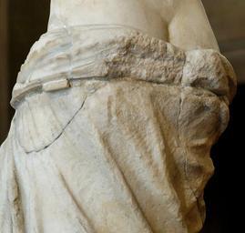 | Keywords: Venus de Milo Louvre Ma399 n12.jpg So-called Venus de Milo Aphrodite from Melos detail of the junction of the two blocks with the burst lines of the hip fragments Parian marble ca 130-100 BC Found in Melos in 1820 Vénus de Milo détail de la jonction des deux blocs et de l'éclatement des deux hanches Marbre de Paros vers 130-100 av J -C Provenance Mélos moderne Milo 1820 H 2 02 m 6 ft 7 ½ in Museum Louvre Temporary location Department of Paintings Sully first floor room 74 Hamiaux M Les Sculptures grecques II Paris 1998 no 52 pp 41-44 object history credit line Gift of the Marquis de Rivière to Louis XVIII of France 1821 accession number Ma 399 LL 299 Jastrow 2007 other versions Venus de Milo |