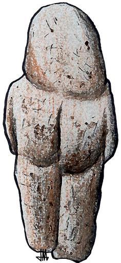 Keywords: Venus of Tan-Tan.jpg The so-called Venus of Tan-Tan is a pebble found in Morocco It is 6 centimeters long and has been claimed as a possible figurine gender indeterminate and headless dated between 300 000 and 500 000 BCE It and its contemporary the Venus of Berekhat Ram might be the earliest representations of the human form Posible figura antropomorfa de unos seis centímetros de alto Es de cuarcita con varias hendiduras algunas naturales y otras al parecer artificiales Además conserva restos de ocre Ha sido datada con no mucha precisión en torno a los 200 000-300 000 años de antigüedad algunos la retrasan hasta los 400 000 ; es en cualquier caso contemporánea de Homo heidelbergensis <br>Fue descubierta en 1999 por el equipo de excavaciones del arqueólogo alemán Lutz Fieldler a un 15 m de profundidad en un sedimento fluvial del río Draa cerca de la localidad de Tan-Tan Marruecos own Drawn after http //donsmaps com/images2/venustantanfrlge jpg this photograph 2006-02 José-Manuel Benito Locutus Borg es Venus de Tan-Tan en Venus of Tan-Tan Stones Prehistory in Morocco Tan-Tan Venus figurines |