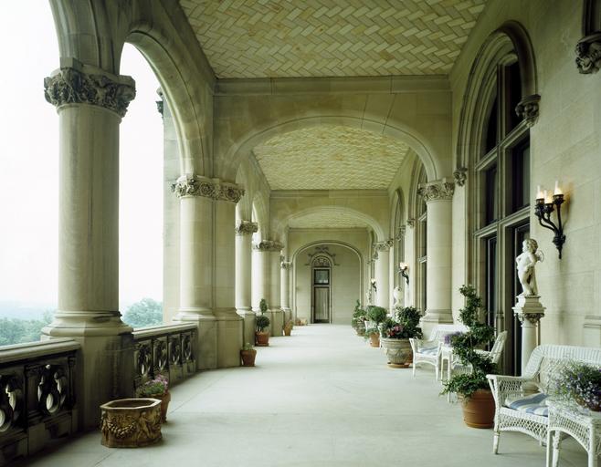 Keywords: veranda mansion estate home residence landmark biltmore architecture porch perspective outdoors luxury villa plants furniture tourist attraction historic victorian private largest house chateau asheville north carolina usa