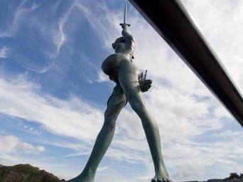 | Keywords: verity stainless steel stainlesssteel bronze statue bronzestatue damien hirst damienhirst sculpture pier harbour ilfracombe devon bristol channel truth modern allegory truth and justice truthandjustice pregnant woman pregnant woman pregnantwoman fetus scales of justice scalesofjustice little dancer littledancer edgar degas edgardegas virgin mother virginmother pangolin polymer-strengthened fibre glass polymerstrengthenedfibreglass fibre glass fibreglass angel of the north angelofthenorth controversial critical ugly outdoor Verity is a stainless steel and bronze statue created by Damien Hirst. The 20.25-metre (66.4 ft) tall sculpture stands on the pier at the entrance to the harbour in Ilfracombe, Devon, looking out over the Bristol Channel towards South Wales. It has been loaned to the town for 20 years. The name of the piece refers to "truth" and Hirst describes his work as a "modern allegory of truth and justice". The statue depicts a pregnant woman holding aloft a sword while carrying the scales of justice and standing on a pile of law books. Half of the sculpture shows the internal anatomy of the pregnant woman, with the fetus clearly visible. The stance has been described as a reference to Little Dancer of Fourteen Years by Edgar Degas, a work that previously inspired Hirst when he created Virgin Mother. The sculpture was cast in stainless steel and bronze in 40 separate sections by Pangolin Editions. The sword, which gives the statue much of its height, and the upper left arm is one polymer-strengthened fibre glass piece. Before being cleared for erection the statue was subjected to tests in a wind tunnel to ensure that it could cope with high winds and spray from the sea. Measuring 25cm (10 inches) higher than the Angel of the North, Verity became the tallest statue in the UK when it was put into place. Members of North Devon Council referred to the controversial nature of the statue as a potential boost to tourism. Local reaction was very mixed, with those critical of the work calling it "ugly" and stating that "it isn't suitable for a Victorian seaside town". Before they allowed planning permission the council received 100 letters from people who objected to the installation of the statue, and 177 letters supporting the application. In August 2013 councillors announced that the statue had a "tremendous effect" with people visiting the town solely to see Hirst's work. Hirst, who lives in Ilfracombe, has loaned the statue to the town for 20 years starting from its erection on 16 October 2012. Verity is a stainless steel and bronze statue created by Damien Hirst. The 20.25-metre (66.4 ft) tall sculpture stands on the pier at the entrance to the harbour in Ilfracombe, Devon, looking out over the Bristol Channel towards South Wales. It has been loaned to the town for 20 years. The name of the piece refers to "truth" and Hirst describes his work as a "modern allegory of truth and justice". The statue depicts a pregnant woman holding aloft a sword while carrying the scales of justice and standing on a pile of law books. Half of the sculpture shows the internal anatomy of the pregnant woman, with the fetus clearly visible. The stance has been described as a reference to Little Dancer of Fourteen Years by Edgar Degas, a work that previously inspired Hirst when he created Virgin Mother. The sculpture was cast in stainless steel and bronze in 40 separate sections by Pangolin Editions. The sword, which gives the statue much of its height, and the upper left arm is one polymer-strengthened fibre glass piece. Before being cleared for erection the statue was subjected to tests in a wind tunnel to ensure that it could cope with high winds and spray from the sea. Measuring 25cm (10 inches) higher than the Angel of the North, Verity became the tallest statue in the UK when it was put into place. Members of North Devon Council referred to the controversial nature of the statue as a potential boost to tourism. Local reaction was very mixed, with those critical of the work calling it "ugly" and stating that "it isn't suitable for a Victorian seaside town". Before they allowed planning permission the council received 100 letters from people who objected to the installation of the statue, and 177 letters supporting the application. In August 2013 councillors announced that the statue had a "tremendous effect" with people visiting the town solely to see Hirst's work. Hirst, who lives in Ilfracombe, has loaned the statue to the town for 20 years starting from its erection on 16 October 2012. |