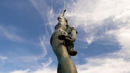 | Keywords: verity stainless steel stainlesssteel bronze statue bronzestatue damien hirst damienhirst sculpture pier harbour ilfracombe devon bristol channel truth modern allegory truth and justice truthandjustice pregnant woman pregnant woman pregnantwoman fetus scales of justice scalesofjustice little dancer littledancer edgar degas edgardegas virgin mother virginmother pangolin polymer-strengthened fibre glass polymerstrengthenedfibreglass fibre glass fibreglass angel of the north angelofthenorth controversial critical ugly outdoor Verity is a stainless steel and bronze statue created by Damien Hirst. The 20.25-metre (66.4 ft) tall sculpture stands on the pier at the entrance to the harbour in Ilfracombe, Devon, looking out over the Bristol Channel towards South Wales. It has been loaned to the town for 20 years. The name of the piece refers to "truth" and Hirst describes his work as a "modern allegory of truth and justice". The statue depicts a pregnant woman holding aloft a sword while carrying the scales of justice and standing on a pile of law books. Half of the sculpture shows the internal anatomy of the pregnant woman, with the fetus clearly visible. The stance has been described as a reference to Little Dancer of Fourteen Years by Edgar Degas, a work that previously inspired Hirst when he created Virgin Mother. The sculpture was cast in stainless steel and bronze in 40 separate sections by Pangolin Editions. The sword, which gives the statue much of its height, and the upper left arm is one polymer-strengthened fibre glass piece. Before being cleared for erection the statue was subjected to tests in a wind tunnel to ensure that it could cope with high winds and spray from the sea. Measuring 25cm (10 inches) higher than the Angel of the North, Verity became the tallest statue in the UK when it was put into place. Members of North Devon Council referred to the controversial nature of the statue as a potential boost to tourism. Local reaction was very mixed, with those critical of the work calling it "ugly" and stating that "it isn't suitable for a Victorian seaside town". Before they allowed planning permission the council received 100 letters from people who objected to the installation of the statue, and 177 letters supporting the application. In August 2013 councillors announced that the statue had a "tremendous effect" with people visiting the town solely to see Hirst's work. Hirst, who lives in Ilfracombe, has loaned the statue to the town for 20 years starting from its erection on 16 October 2012. Verity is a stainless steel and bronze statue created by Damien Hirst. The 20.25-metre (66.4 ft) tall sculpture stands on the pier at the entrance to the harbour in Ilfracombe, Devon, looking out over the Bristol Channel towards South Wales. It has been loaned to the town for 20 years. The name of the piece refers to "truth" and Hirst describes his work as a "modern allegory of truth and justice". The statue depicts a pregnant woman holding aloft a sword while carrying the scales of justice and standing on a pile of law books. Half of the sculpture shows the internal anatomy of the pregnant woman, with the fetus clearly visible. The stance has been described as a reference to Little Dancer of Fourteen Years by Edgar Degas, a work that previously inspired Hirst when he created Virgin Mother. The sculpture was cast in stainless steel and bronze in 40 separate sections by Pangolin Editions. The sword, which gives the statue much of its height, and the upper left arm is one polymer-strengthened fibre glass piece. Before being cleared for erection the statue was subjected to tests in a wind tunnel to ensure that it could cope with high winds and spray from the sea. Measuring 25cm (10 inches) higher than the Angel of the North, Verity became the tallest statue in the UK when it was put into place. Members of North Devon Council referred to the controversial nature of the statue as a potential boost to tourism. Local reaction was very mixed, with those critical of the work calling it "ugly" and stating that "it isn't suitable for a Victorian seaside town". Before they allowed planning permission the council received 100 letters from people who objected to the installation of the statue, and 177 letters supporting the application. In August 2013 councillors announced that the statue had a "tremendous effect" with people visiting the town solely to see Hirst's work. Hirst, who lives in Ilfracombe, has loaned the statue to the town for 20 years starting from its erection on 16 October 2012. |