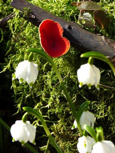 Keywords: vermilion kelchbecherling mushroom snowflake spring flower scarlet calyx cup ling sarcoscypha coccinea red vermilion magnificent cup ling hose mushroom calyx cup ling related sarcoscyphaceae