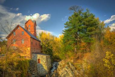 Keywords: vermont old mill fall autumn water landscape architecture building trees
