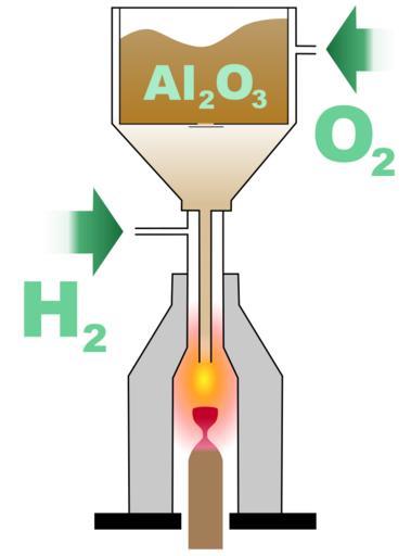 | Keywords: Verneuil process diagram.svg 3 cellspacing 0 align center style border 2px solid seagreen; margin 1 5em 0em 1 5em 0em; + style background seagreen; color white; Verneuil Process - background lightgreen; padding 0px 15px 0px 7px; border-right 2px solid seagreen; Created by Aram Dulyan User Aramgutang align right style padding-left 5px; Date 16'FEB 2006 - 4 style background mintcream; padding 0px 15px 0px 7px; border-right 2px solid seagreen; This diagram illustrates the Verneuil process flame fusion used to synthesise rubies and other forms of corundum Finely powdered aluminium oxide is released from the container at the top and travels down with the oxygen At the point where the oxygen enters the hydrogen environment combustion occurs with a flame of at least 2000°C The aluminum oxide powder melts into small droplets which fall onto the support below recrystallising into a boule The support is continuously and slowly withdrawn allowing a large boule to form Diagram created using Inkscape align right style padding-left 5px; Camera N/A - align right style padding-left 5px; ISO N/A - align right style padding-left 5px; Aperture N/A - align right style padding-left 5px; Shutter speed N/A Aramgutang Corundum Process diagrams SVG mineralogy Auguste Verneuil |
