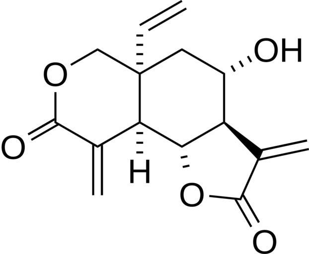 Keywords: Vernolepin.svg Structure of Vernolepin Own 2013-01-22 J1812 <span class signature-talk >talk</span> PD-chem Sesquiterpene lactones