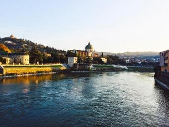 Keywords: verona bridge river adige the river adige vista landscape water morning sun italy sky city riva veneto church houses spring