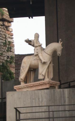 | Keywords: VeronaCastelvecchioStatuaEquestreCangrande.jpg Verona Castelvecchio museum equestrian statue of Cangrande della Scala La statua equestre di Cangrande della Scala proveniente dalla Arche scaligere di Verona oggi conservata presso il Museo di Castelvecchio a Verona own original text Self made photo 1 2006-10 MM Statue of Cangrande della Scala Verona |