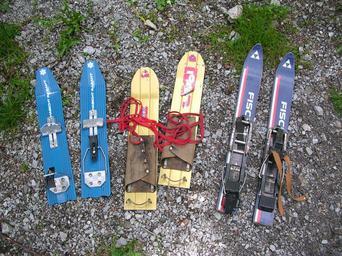 | Keywords: Verschiedene Firngleiter- (Figl-) Modelle.JPG en Firngleiter Figl Secial Short Skis for gliding down steep Slopes in Spring Different bindings de Verschiedene Modelle von Firngleitern Figl own Svickova 2008-06-20 Skiing equipment Ski bindings |