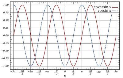 Keywords: Versine and Coversine.svg validSVG en A plot of the versed sine versin and coversed sine coversin between -3 and 3 own Inductiveload 2008-07-23 Trigonometric functions