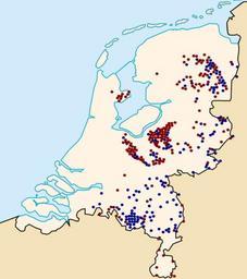| Keywords: Verspreiding grafheuvels-urnenvelden Nederland.svg en Tumulus in the Netherlands In blue the Urnfields in red Tumulus nl Grafheuvels in Nederland In blauw Urnenvelden in rood grafheuvels own Arch 2011 Based on image Map_of_the_Netherlands_nl png with locationscourse Cultuurhistorisch Beheer http //www chbeheer nl/elementen/grafheuvel-en-urnenveld chbeheer nl Urnfield culture Cc-zero | ||||