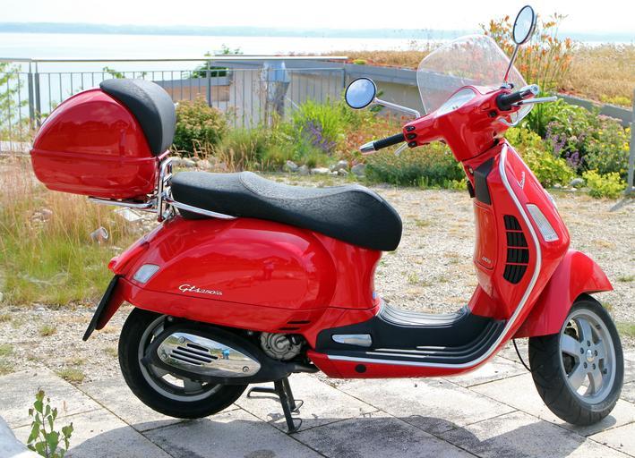 Keywords: vespa roller motor scooter red flitzer locomotion retro cult mirror handlebars leisure hobby fun