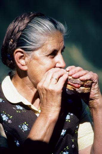 Keywords: vespers austria bread eat old woman senior bite off