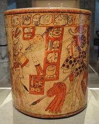 Keywords: Vessel with Battle Scene, 600-900 AD, Mesoamerica, Guatemala, Nebaj region, Maya, ceramic and slip, view 1 - Cleveland Museum of Art - DSC08798.JPG en Exhibit in the Cleveland Museum of Art Cleveland Ohio USA Photography was permitted in the museum without restriction This artwork is old enough so that it is in the public domain Daderot 2012-09-07 14 57 46 Daderot cc0 cc0 Mayan art in the Cleveland Museum of Art Nebaj Maya cylinder vases