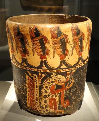 Keywords: Vessel with jaguars and fish, Honduras, Ulua Valley, 600-900 AD, earthenware and pigment - De Young Museum - DSC00699.JPG en Exhibit in the De Young Museum San Francisco California USA This artwork is in the public domain because the artist died more than 70 years ago Photography was permitted in the museum without restriction 2013-11-05 15 46 58 own Daderot other versions cc-zero Maya ceramics in the De Young Museum Uploaded with UploadWizard UlĂșa Valley pottery |