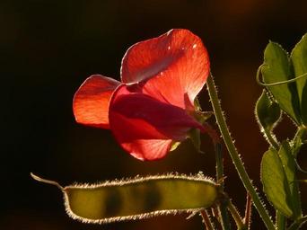 Keywords: vetch vicia fabaceae faboideae legume red flower blossom bloom flower garden flora back light color colorful light shadow fruit seeds