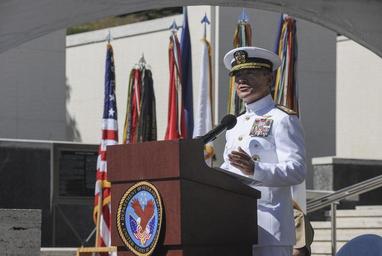 | Keywords: Veterans Day event 141111-N-GI544-103.jpg en Adm Harry B Harris Jr commander of U S Pacific Fleet speaks during a Veterans Day ceremony held at Punchbowl the National Memorial Cemetery of the Pacific on Oahu U S Navy photo by Mass Communication Specialist 2nd Class Laurie Dexter Unit Defense Imagery Management Operations Center DVIDS Tags JROTC; Honor Guard; Honolulu; Veterans Day; DIMOC; Punchbowl; National Memorial Cemetery of the Pacific; DVIDS Bulk Import; MC2 Laurie Dexter 2014-11-11 Petty Officer 2nd Class Laurie Dexter https //www dvidshub net/image/1666778/veterans-day-event 141111-N-GI544-103 2014-11-20 07 22 HONOLULU HI US PD-USGov-Military-Navy Veterans Day 2014 Images from DoD uploaded by Fæ |