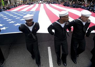 | Keywords: Veterans Day parade 151111-N-OT964-982.jpg en 151111-N-OT964-982 NEW YORK Nov 11 2015 Sailors hold the national ensign as they march during the NYC Veterans Day parade U S Navy photo by Mass Communication Specialist 1st Class Martin L Carey/Released Unit Navy Media Content Services DVIDS Tags heritage; deployed; fast; united states; tradition; america; freedom; commerce; navy; Sailors; military; U S Navy; liberty; war fighters; CHINFO; protect; worldwide; sea lanes; on watch; war fighting; flexible; preserve peace; deter aggression; defend freedom; operate forward; be ready; war fighting first; NMCS; navy media content service; DVIDS Bulk Import 2015-11-11 Petty Officer 2nd Class Martin Carey https //www dvidshub net/image/2287564/veterans-day-parade 151111-N-OT964-982 2015-11-14 03 57 NEW YORK NY US PD-USGov-Military-Navy Veterans Day 2015 Images from DoD uploaded by Fæ |