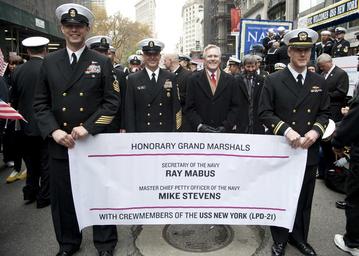 | Keywords: Veterans Day parade 151111-N-OT964-734.jpg en 151111-N-OT964-734 NEW YORK Nov 11 2015 Master Chief Petty Officer of the Navy MCPON Mike Stevens and Secretary of the Navy SECNAV Ray Mabus march with Sailors during the NYC Veterans Day parade U S Navy photo by Mass Communication Specialist 1st Class Martin L Carey/Released Unit Navy Media Content Services DVIDS Tags heritage; deployed; fast; united states; tradition; america; freedom; commerce; navy; Sailors; military; U S Navy; liberty; war fighters; CHINFO; protect; worldwide; sea lanes; on watch; war fighting; flexible; preserve peace; deter aggression; defend freedom; operate forward; be ready; war fighting first; NMCS; navy media content service; DVIDS Bulk Import 2015-11-11 Petty Officer 2nd Class Martin Carey https //www dvidshub net/image/2287657/veterans-day-parade 151111-N-OT964-734 2015-11-14 05 13 NEW YORK NY US PD-USGov-Military-Navy Ray Mabus Veterans Day 2015 Images from DoD uploaded by Fæ |