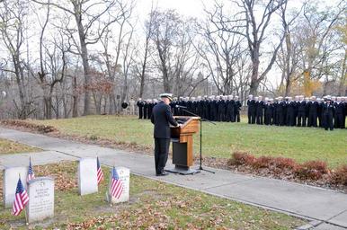 | Keywords: Veterans Day wreath-laying ceremony 091110-N-IK959-407.jpg en U S Navy Rear Adm Clifford S Sharpe at lectern commander of Naval Service Training Command speaks during a Veterans Day wreath-laying ceremony at the U S Naval Cemetery on Naval Station Great Lakes Ill Nov 10 2009 U S Navy photo by Scott A Thornbloom/Released Unit Defense Imagery Management Operations Center DVIDS Tags Formation; DIMOC; USN; DVIDS Bulk Import 2009-11-10 Scottt Thornbloom https //www dvidshub net/image/1583600/veterans-day-wreath-laying-ceremony 091110-N-IK959-407 2014-10-07 06 01 NAVAL STATION GREAT LAKES IL US PD-USGov-Military-Navy Naval Station Great Lakes Veterans Day 2009 Images from DoD uploaded by Fæ |