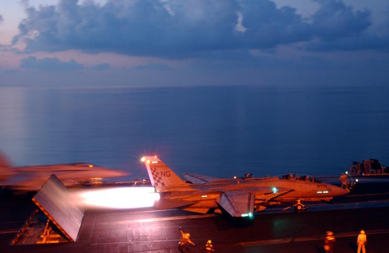 | Keywords: 011225-N-8391L-001 F-14 Launches from John C. Stennis.jpg en 011225-N-8391L-001 At sea aboard USS John C Stennis CVN 74 Dec 25 2001- Christmas Day an F-14 Tomcat from the Checkmates of Fighter Squadron 211 VF-211 launches off of the flight deck Stennis and her embarked Carrier Air Wing Nine CVW-9 are conducting missions in support of Operation Enduring Freedom U S Navy photo by Photographers Mate 3rd Class Troy M Latham Released 011225-N-8391L-001 Navy http //www navy mil/view_image asp id 297 U S Navy photo by Photographers Mate 3rd Class Troy M Latham PD-USGov-Military-Navy Aboard USS John C Stennis CVN-74 F-14A Tomcat on flight decks F-14 Tomcat aircraft carrier launches Fighter Squadron 211 United States Navy Aircraft using afterburning |