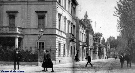 | Keywords: Vista sulla via Dandolo all'incrocio con via Cavour (a destra) e via Sabotino (a sinistra). A destra il pubblico passeggio alberato donato nel 1816 dal conte Vincenzo Dandolo alla municipalità di Varese. Sullo sfondo la chiesa della Madonnina in Prato. varese viavincenzodandolo |