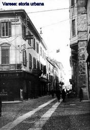 Keywords: Visione di via Manzoni. A destra gli alti portici di palazzo Mera-Gorini (arch. Federico Talamona, 1925). varese