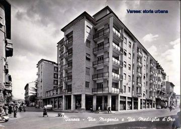 Keywords: Vie Medaglie d'Oro e via Magenta. Al centro l'impattante edificio multipiano occupa ciò che restava del parco della villa dei Dandolo (1810) sorta sui resti del convento dell'Annunciata (1468). varese viamedagliedoro