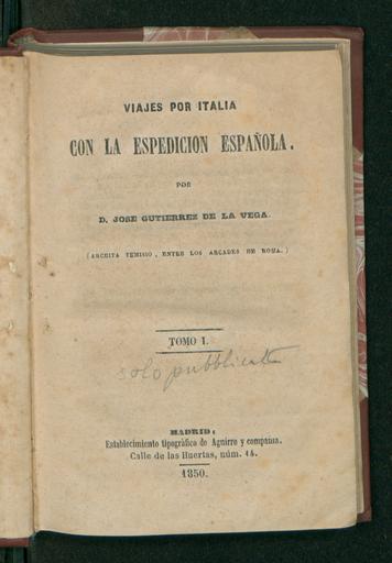 | Keywords: Viajes por Italia con la espedicion española.tif it Viajes por Italia con la espedicion española 2016-06-08 BEIC Gutierrez De La Vega José other versions PD-old-70-1923 Travel literature José Gutiérrez de la Vega y Moncloa 1850 books from Spain |