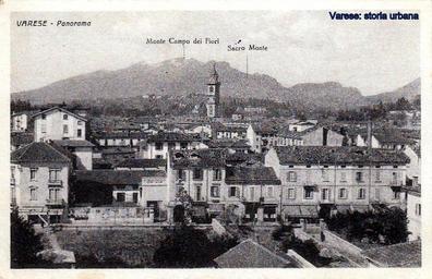 Keywords: Visione della parte terminale di viale Umberto I (ora Medaglie d'Oro). Sulla destra il parco e un piccolo scorcio della villa dei Dandolo (1810) sorto al posto del convento dell'Annunciata (1468) . varese viamedagliedoro vialeumbertoi