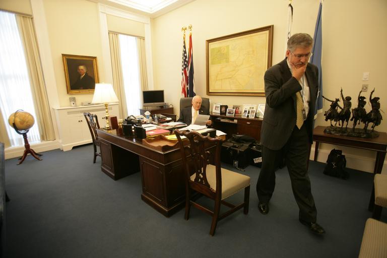 View Original:Vice_President_Cheney_Reads_Document_in_His_Office_as_David_Addington_Departs.jpg (4992x3328)