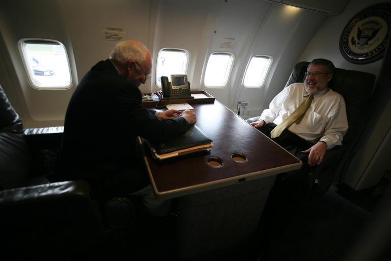 View Original:Vice_President_Cheney_Talks_with_David_Addington_in_the_Stateroom_of_Air_Force_Two.jpg (4368x2912)