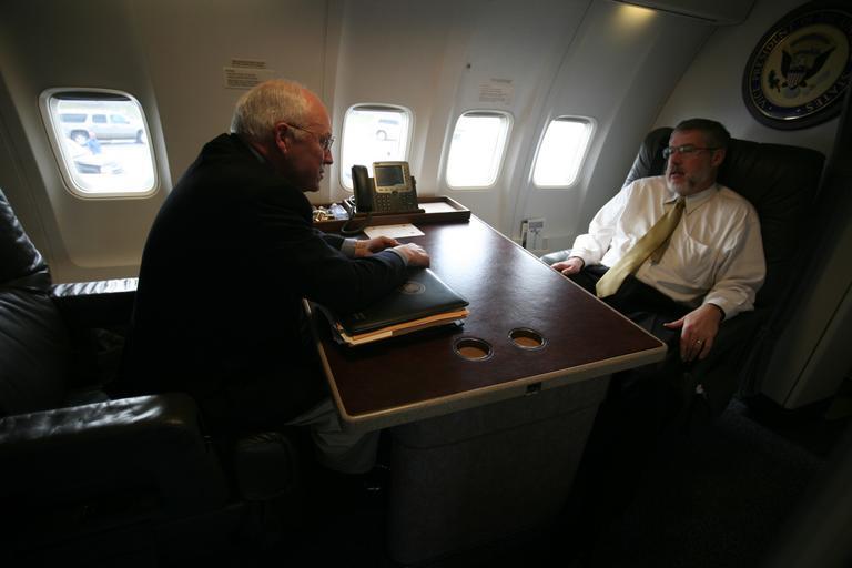 View Original:Vice_President_Cheney_Talks_with_David_Addington_in_the_Stateroom_of_Air_Force_Two.jpg (4368x2912)