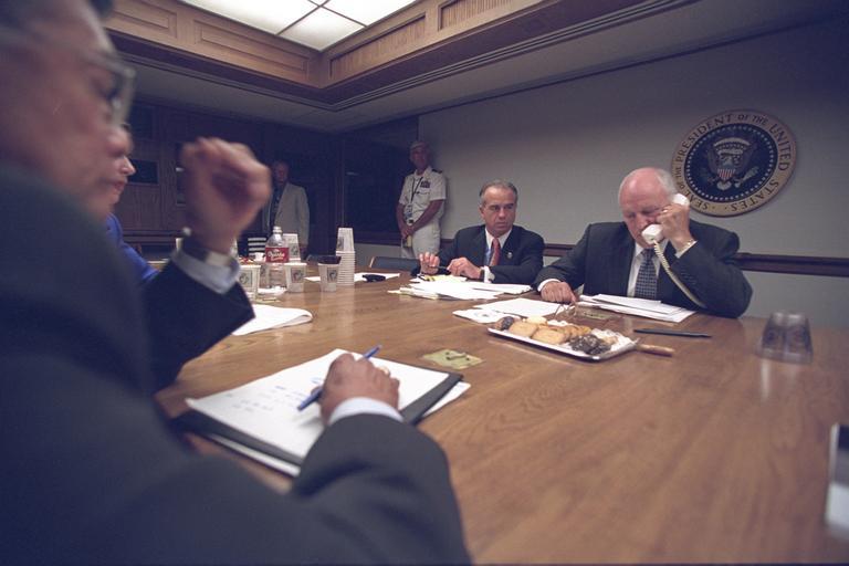 View Original:Vice_President_Cheney_with_Senior_Staff_in_the_President's_Emergency_Operations_Center_(PEOC).jpg (3072x2048)