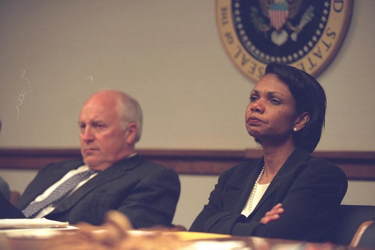 View Original:Vice_President_Cheney_with_Condoleezza_Rice_in_the_President's_Emergency_Operations_Center_(PEOC).jpg (3072x2048)
