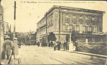 | Keywords: Viciebsk, Zamkavaja-Teatralnaja. Віцебск, Замкавая-Тэатральная (1900).jpg Віцебск Viciebsk ог вуліц Замкавай vulica Zamkavaja і Тэат альнай vulica Teatralnaja Аляксееўская жаночая гімназія Таямніцы Віцебска Author < 1918 PD-old-70 History of Vitebsk Puškina street Viciebsk Zamkavaja street Viciebsk |