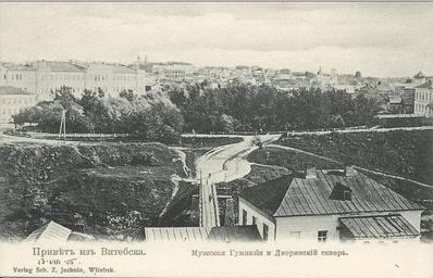 Keywords: Viciebski zamak. Віцебскі замак (1905).jpg Віцебск Viciebsk Від з П ачысьценскай га ы на эшткі замка і мужчынскую гімназію Вікта Ба ысенкаў Author 1905 PD-old-70 History of Vitebsk Viciebsk Castle