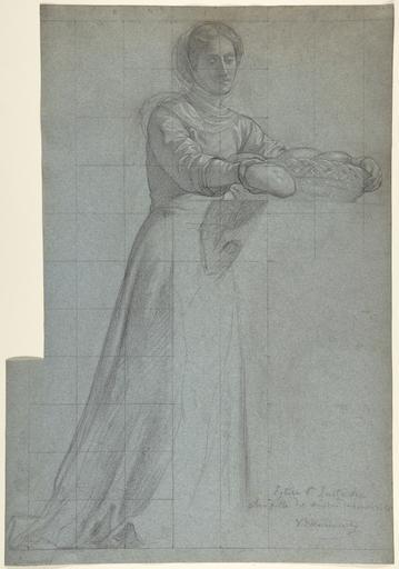 Keywords: Victor-François-Eloi Biennourry, A Woman Distributing Bread from a Basket, ca. 1854.jpg ~ 1854 Black and white chalk squared with black chalk on blue laid paper 15-3/4 x 9-7/8 in 40 0 x 25 1 cm Institution Metropolitan Museum of Art object history exhibition history 336782 Signature Signed in graphite lower left Biennourry Inscription Inscribed and signed in chalk lower right Eglise St Eustache / chapelle des oeuvres de Misericorde / VBiennourry Marking Watermark D C BLAUW credit line Gift of Alexander B V Johnson and Roberta J M Olson 1998 accession number 1998 406 2 PD-100 Interior of Église Saint-Eustache de Paris Architectural drawings of Paris Drawings in the Metropolitan Museum of Art 1854 drawings Images of Paris from the Metropolitan Museum of Art People with baskets in art Baskets of France |