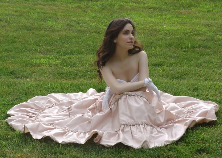 Keywords: Victoria Baker Pink Dress.JPG Młoda holca w róžojtym šaće own Beatlesforever Personality rights Sitting women Pink dresses Females looking up Females with gloves People on grass Sitting with dresses 2000s dresses