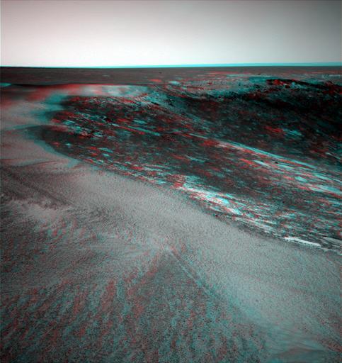 | Keywords: Victoria Crater 3D 02.png anaglyph This anaglyph was made using the Mars Rover Opportunity Navcam raw images taken at the rim of Victoria Crater on Sol 952 available at http //marsrovers jpl nasa gov http //marsrovers jpl nasa gov It was created by J Bergquist using Mathcad 11 The NASA/JPL versions of these images are at http //photojournal jpl nasa gov/jpeg/PIA08784 jpg http //photojournal jpl nasa gov and http //marsrovers jpl nasa gov/gallery/press/opportunity/20060928a/site_B76_275_navcam_CYP_A-B953R1 jpg http //marsrovers jpl nasa gov Note that there seems to have been some losses in the conversion to a panoramic anaglyph Transferred from http //en wikipedia org en wikipedia 2006-09-30 Original uploader was Jbergquist at http //en wikipedia org en wikipedia PD-RETOUCHED-USER jbergquist original upload log page en wikipedia Victoria_Crater_3D_02 png 2006-09-30 22 46 Jbergquist 962×1019×8 1770269 bytes <nowiki>This anaglyph was made using the Mars Rover Opportunity Navcam raw images taken at the rim of Victoria Crater on Sol 952 available at http //marsrovers jpl nasa gov http //marsrovers jpl nasa gov It was created by J Bergquist using Mathcad 11 The N</nowiki> Victoria crater Mars 3D landscape |