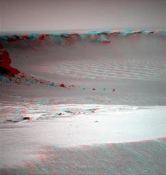 | Keywords: Victoria Crater 3D 04.png anaglyph This anaglyph was made using the Mars Rover Opportunity Navcam raw images taken at the rim of Victoria Crater on Sol 952 available at http //marsrovers jpl nasa gov http //marsrovers jpl nasa gov It was created by J Bergquist using Mathcad 11 The NASA/JPL versions of these images are at http //photojournal jpl nasa gov/jpeg/PIA08784 jpg http //photojournal jpl nasa gov and http //marsrovers jpl nasa gov/gallery/press/opportunity/20060928a/site_B76_275_navcam_CYP_A-B953R1 jpg http //marsrovers jpl nasa gov Note that there seems to have been some losses in the conversion to a panoramic anaglyph Transferred from http //en wikipedia org en wikipedia 2006-09-30 Original uploader was Jbergquist at http //en wikipedia org en wikipedia PD-RETOUCHED-USER jbergquist original upload log page en wikipedia Victoria_Crater_3D_04 png 2006-09-30 22 50 Jbergquist 962×1019×8 1441684 bytes <nowiki>This anaglyph was made using the Mars Rover Opportunity Navcam raw images taken at the rim of Victoria Crater on Sol 952 available at http //marsrovers jpl nasa gov http //marsrovers jpl nasa gov It was created by J Bergquist using Mathcad 11 The N</nowiki> Victoria crater Mars 3D landscape |