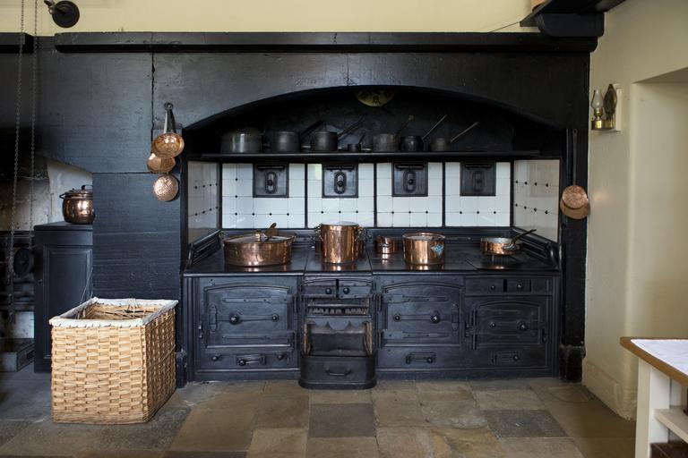Keywords: victorian cooking range copper utensils whicker basket stone floor wall bracket oil lamp audley end stately home