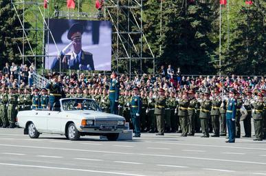 Keywords: victory day the 9th of may parade commander in chief greeting samara square of kuibyshev troops the rostrum russia