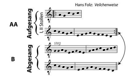 | Keywords: Vielchenweise.svg musical illustration of the parts of bar form using a 14th century melody by Meistersinger Hans Folz PD-old-100 Original upload log page en wikipedia Vielchenweise svg 2011-04-26 10 26 TotalFailure 370×223× 84047 bytes <nowiki>added steg text corrected the spelling compressed systems </nowiki> 2011-04-26 09 13 TotalFailure 325×275× 89402 bytes <nowiki>musical illustration of the parts of bar form using a 14th century melody by Meistersinger Hans Folz </nowiki> Musical form Songs Hans Folz German text |